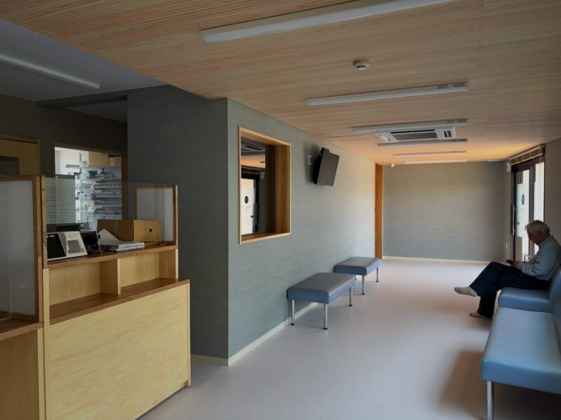 感染対策だけでなく心理的な安心感も得られるよう、内科と小児科の待合室を分けています。また、スタッフの動線も最適化し、調剤業務や患者対応の効率が向上するよう諸室を再構成しました。