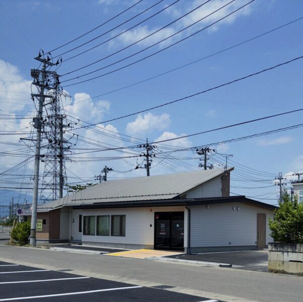 既存薬局の屋根の下に増築分が納まるように計画することで、パッと見たときに既存と増築が調和するよう努めました。工事難易度の高いポイントでしたが職人さんが綺麗に施工してくれました。