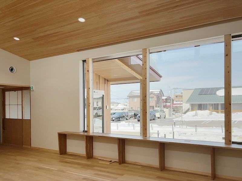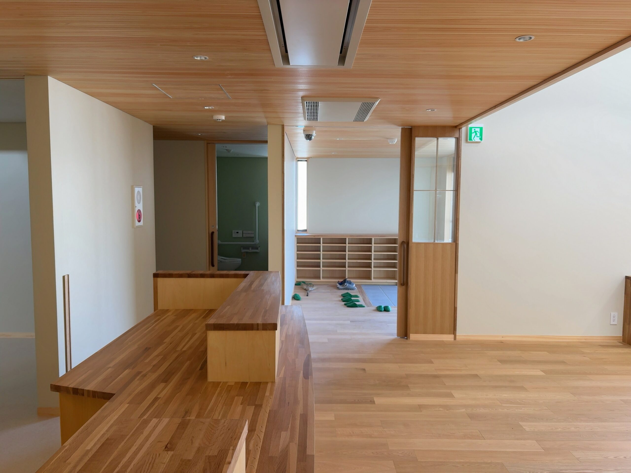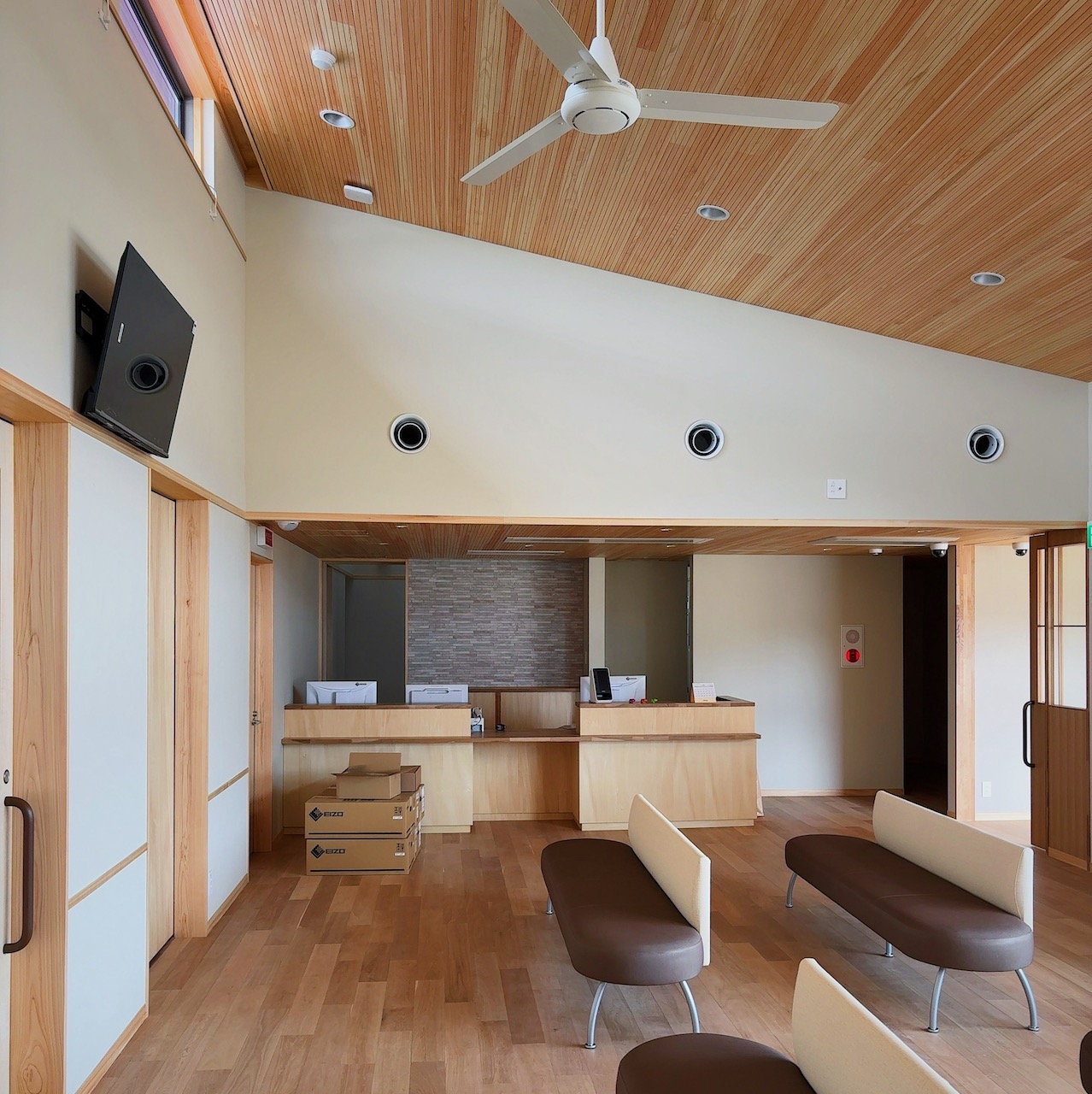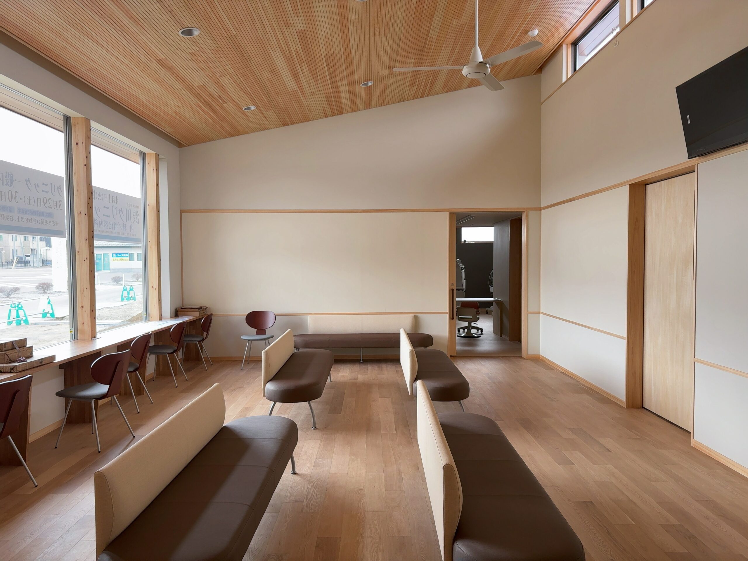 雑居ビル型のクリニックと異なり、平面を広く使える木造平屋の強みを活かし、送迎者を含めてゆったり過ごせる広さを確保しました。