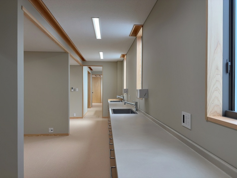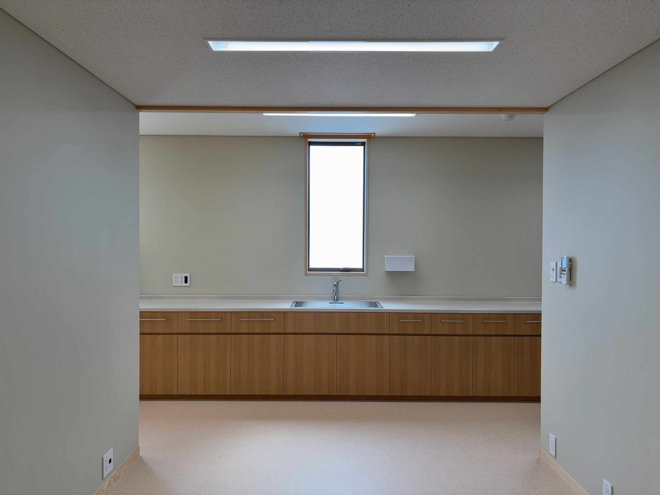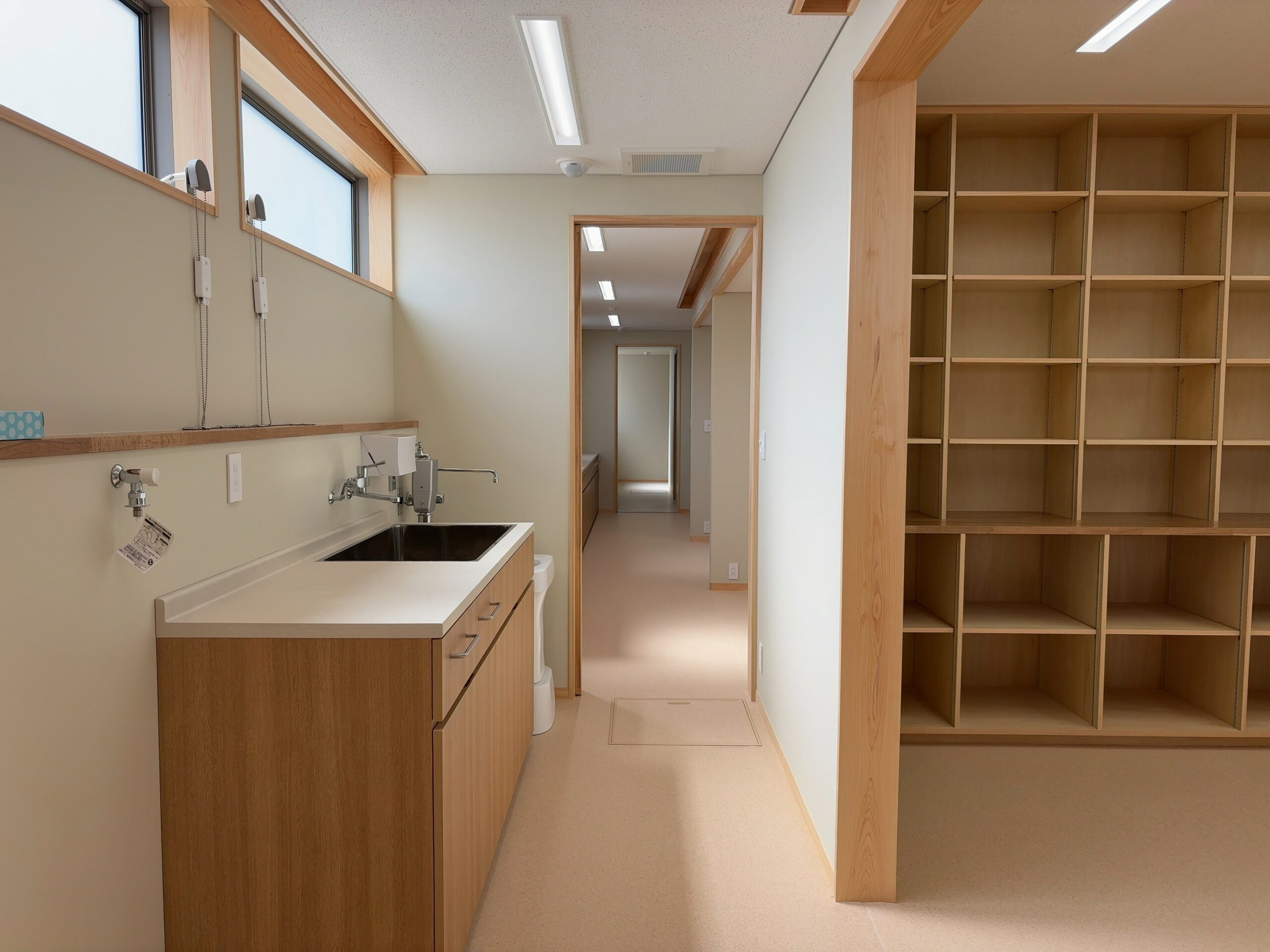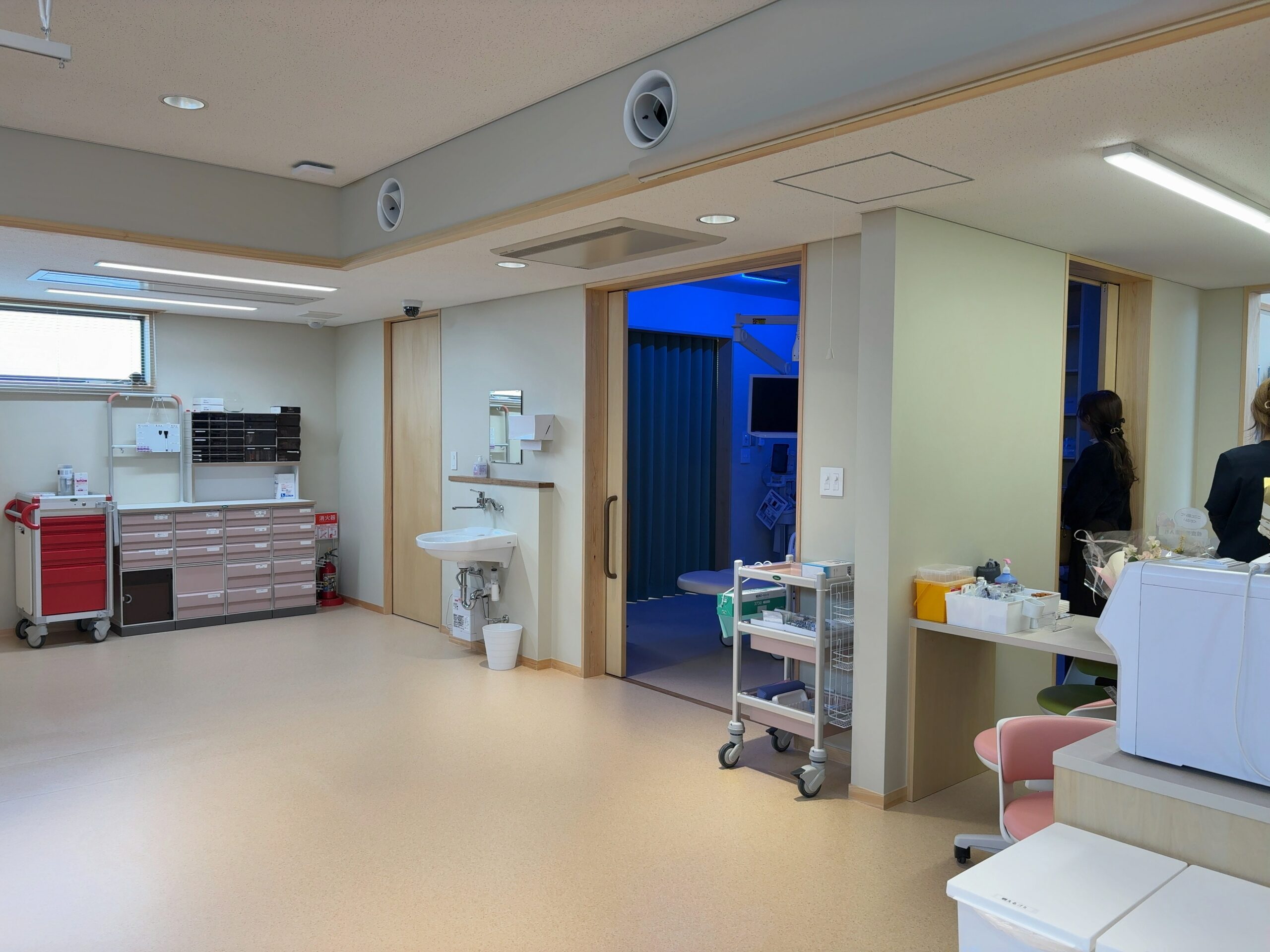 隣接する洗浄コーナーは、使用済み器具と清潔な器具の通る動線が交わらないよう計画し、感染リスクを抑えた衛生的な環境を確保しました。